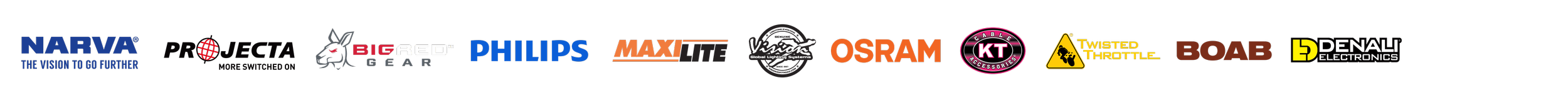 Specialising in automotive electrical and lighting products, as well as portable power management and vehicle accessories, our stable of established industry names includes NARVA, Projecta, Philips Automotive, OSRAM, Vision X, Big Red Gear, KT Cable, BOAB, Maxi-Lite, Twisted Throttle, Denali Electronics.